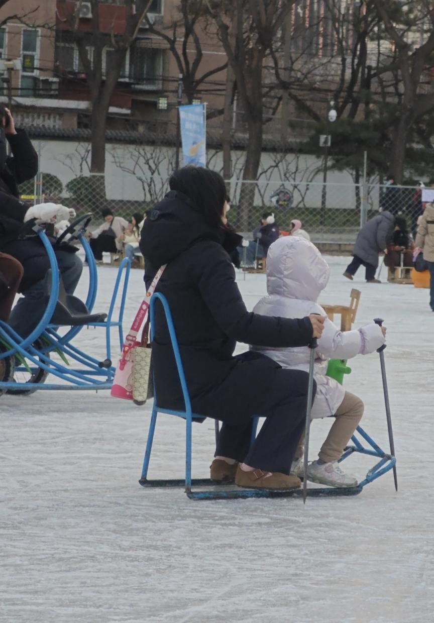 冰场里最吵杂的要数“接龙”了,最前边有个东谈主领滑,素昧平生的东谈主齐不错自愿踩着前边东谈主的冰车进行“接龙”。“我也念念去‘接龙’,但是我背着书包,留给背面东谈主的空间太小了,不好意旨钦慕去。”一位旅客尽管也念念尝试,但是背后的书包让他打了退堂饱读。